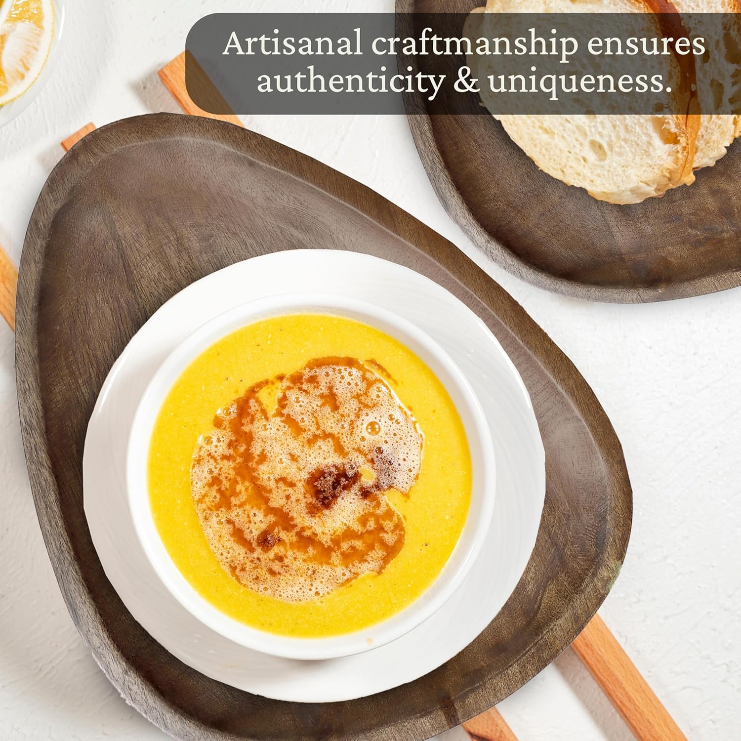 Handcrafted Wooden Almond Shape serving & Decorative Tray Pack Of 2