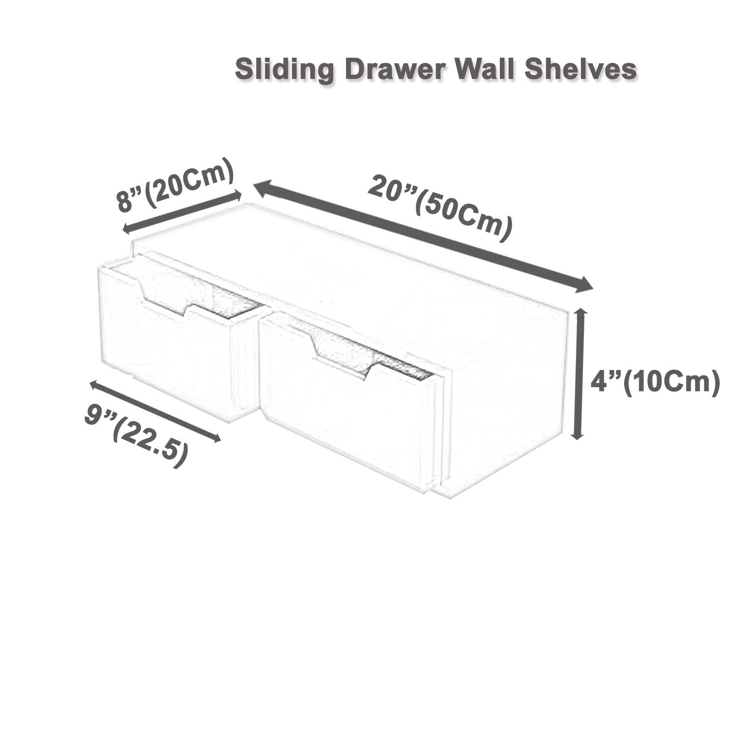 Wooden Wall Mounted L x W x H = 20" x 8" x 4" Floating Wall Hanigng Shelves for 2 Sliding Drawer Include Wall Shelf for Living Room | Bed Room.